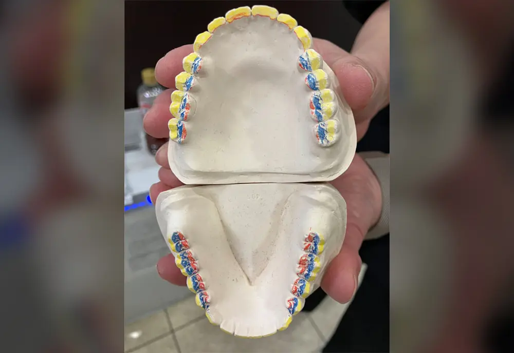 人工歯を装着する際の角度など、3D的な位置関係を合わせるための**近藤義歯研究所オリジナルのテンプレート「コンプシステム」**を開発し、特許を取得しました。